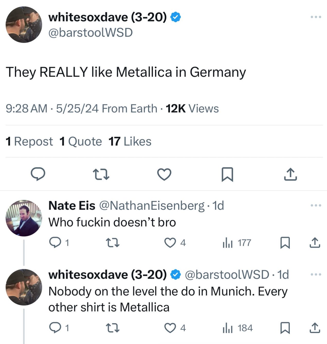 White Sox Dave Is In Germany Doing White Sox Dave Things: Thinks Germans Are Obsessed with Metallica, Not Realizing They Were Playing In Munich The Same Night