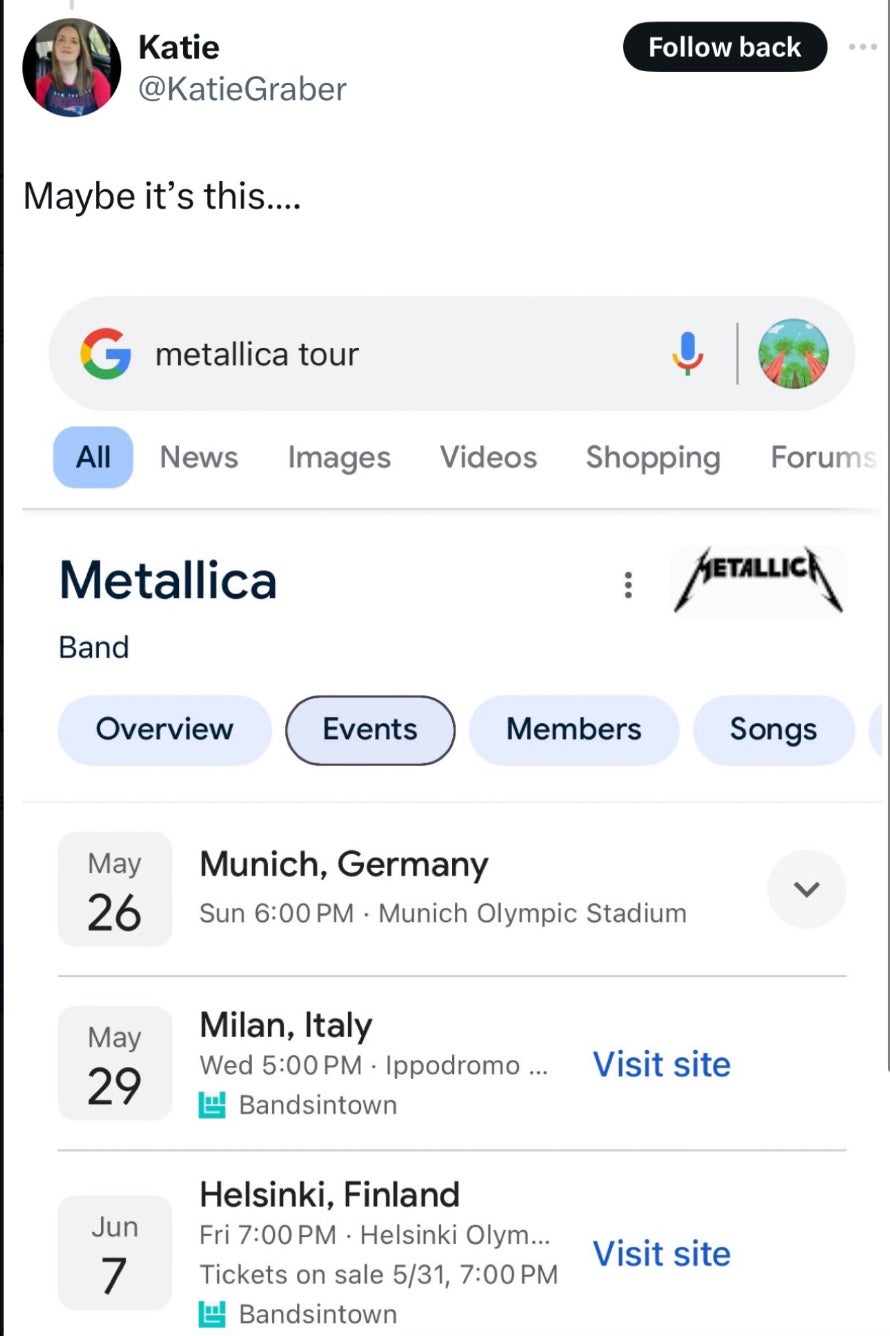 Just so happens Metallica also happens to be in Munich today, playing Olympic Stadium (capacity 80,000).