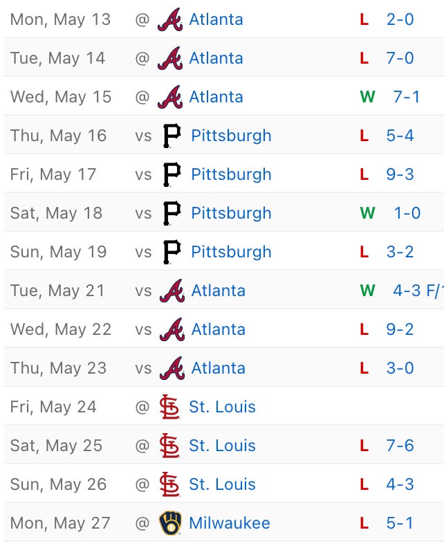 There's so many considerations and they're all working towards the same truth: the Chicago Cubs have been categorically awful in May. So bad that we can't even complain about the bullpen because there haven't been any leads to blow. So keep that luxury in mind next time you want to execute a reliever: there's varying levels of pain and we've grown far away from the anguish of high leverage appearances.
