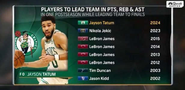 For those keeping score at home, we've gone through Tatum vs Brown, Tatum secretly hates Jaylen won the ECF MVP, the Celts postseason run hasn't been impressive, Derrick Lively is better than Porzingis, Kyrie is better than both Tatum/Brown, and now Derrick White is more impactful than Jayson Tatum