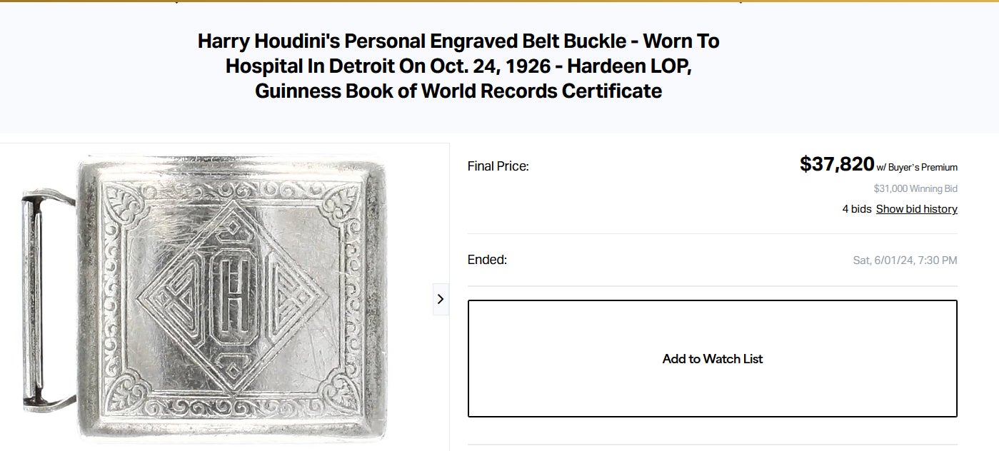 Harry Houdini's Belt Buckle ($37,820)