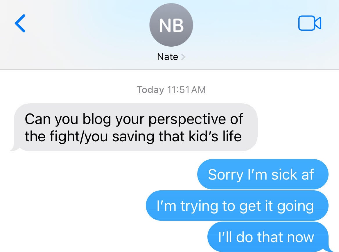 Look I didn't want to take all the credit for saving Rico's job as well as this dude Gus's life but Nate is the editor in chief and he told me to write a blog taking all the credit so I have to.