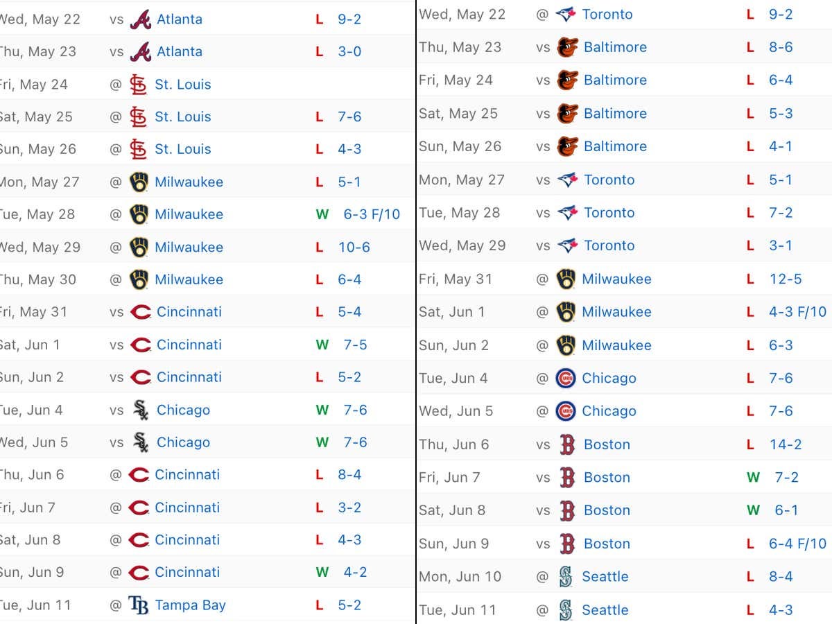 A combined 28-54 since April 27th is good for 55-107 over a full 162 and completely disgusting. I’ll do my best to explain how it got to be so shitty.