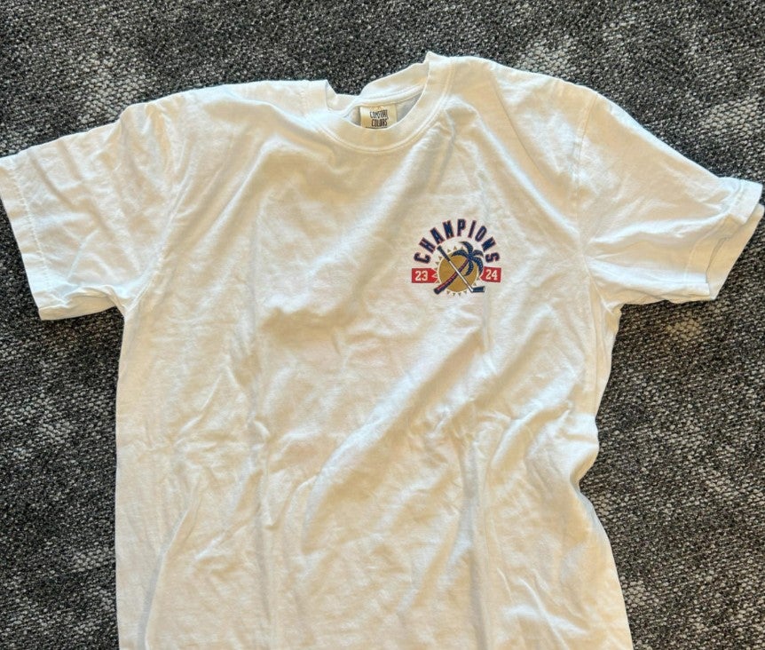 Our investigators have confirmed that, notwithstanding our correspondence, your client proceeded with its plans to market and sell—and did in fact market and sell—the counterfeit “Florida Champions Tee” shirts, which prominently feature the Florida Panthers’ registered “Palm Tree & Stick” design mark (U.S. Reg. No. 1883140) (see Exhibit A, showing sample acquired by NHL). These sales took place between June 28 and June 30 at various locations in the Fort Lauderdale area—including to