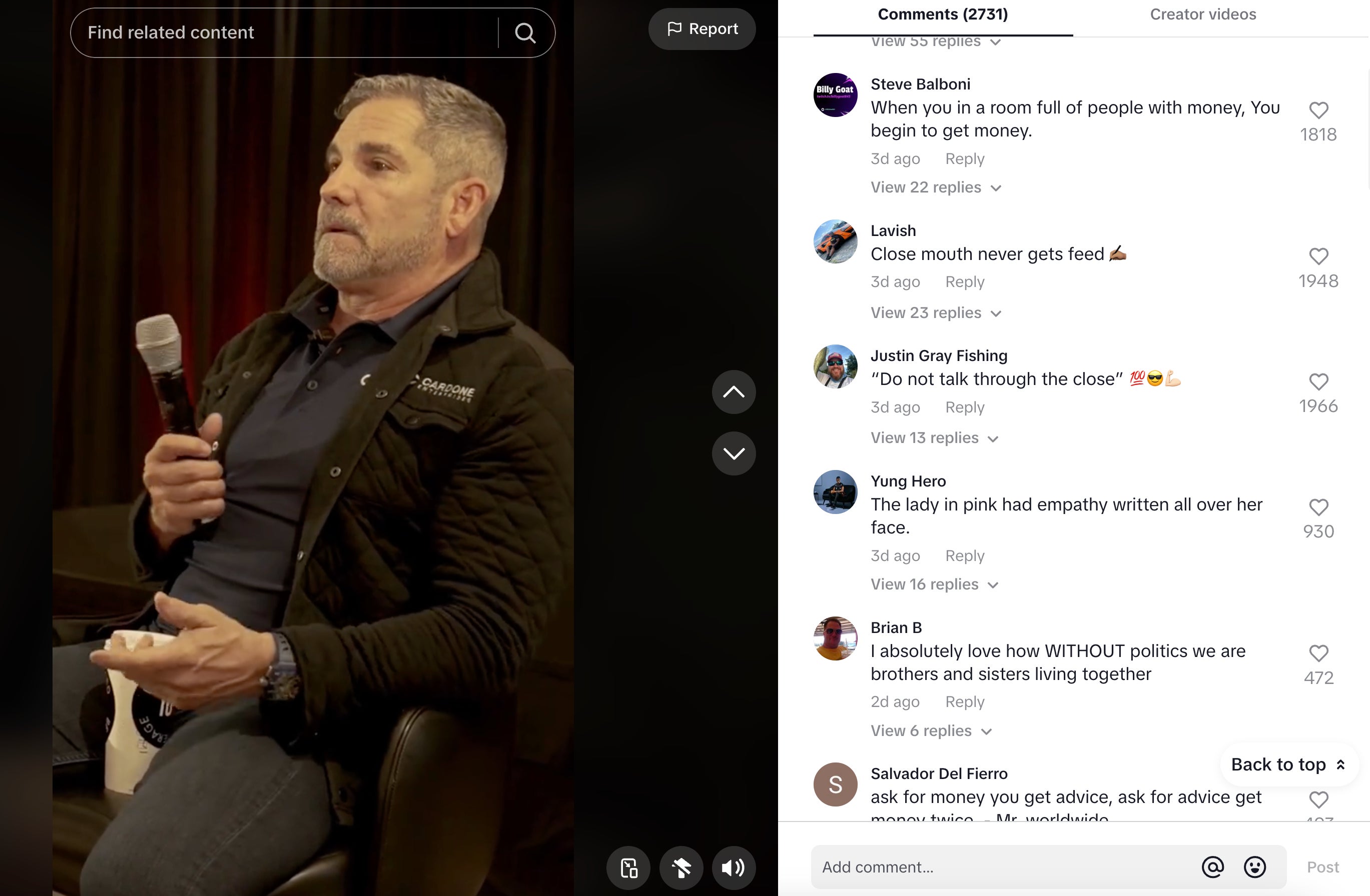 The hustle/grindset culture of this world will always be around. Self-help has always been a huge genre, but the "wake up and grind" Instagram pages from the early 2010s have evolved into what we just watched. Grant Cardone, and others, are taking advantage of this market. Are they scamming people? That's up to your interpretation. These events, without a doubt, do provide "value." I'm sure there are various "success" stories that people credit to Cardone.