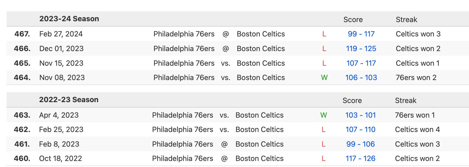 In terms of the guard defense, Maxey/Lowry/Jackson isn't all that different from last year's group who had all sorts of problems slowing down both Jrue Holiday (14 a game on 47/44%) and Derrick White (18 a game on 42.6/40%). If you can't stop the dribble drives into the paint, you will not beat the Boston Celtics 4 out of 7 times. It's really that simple.