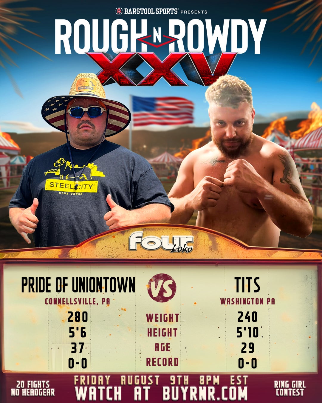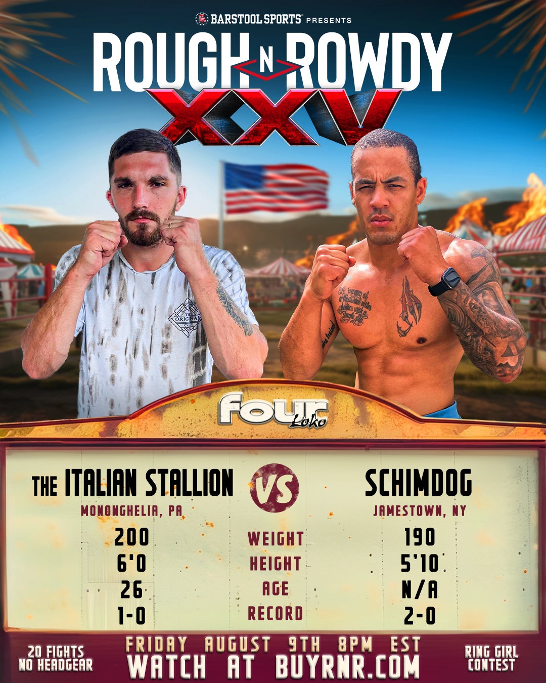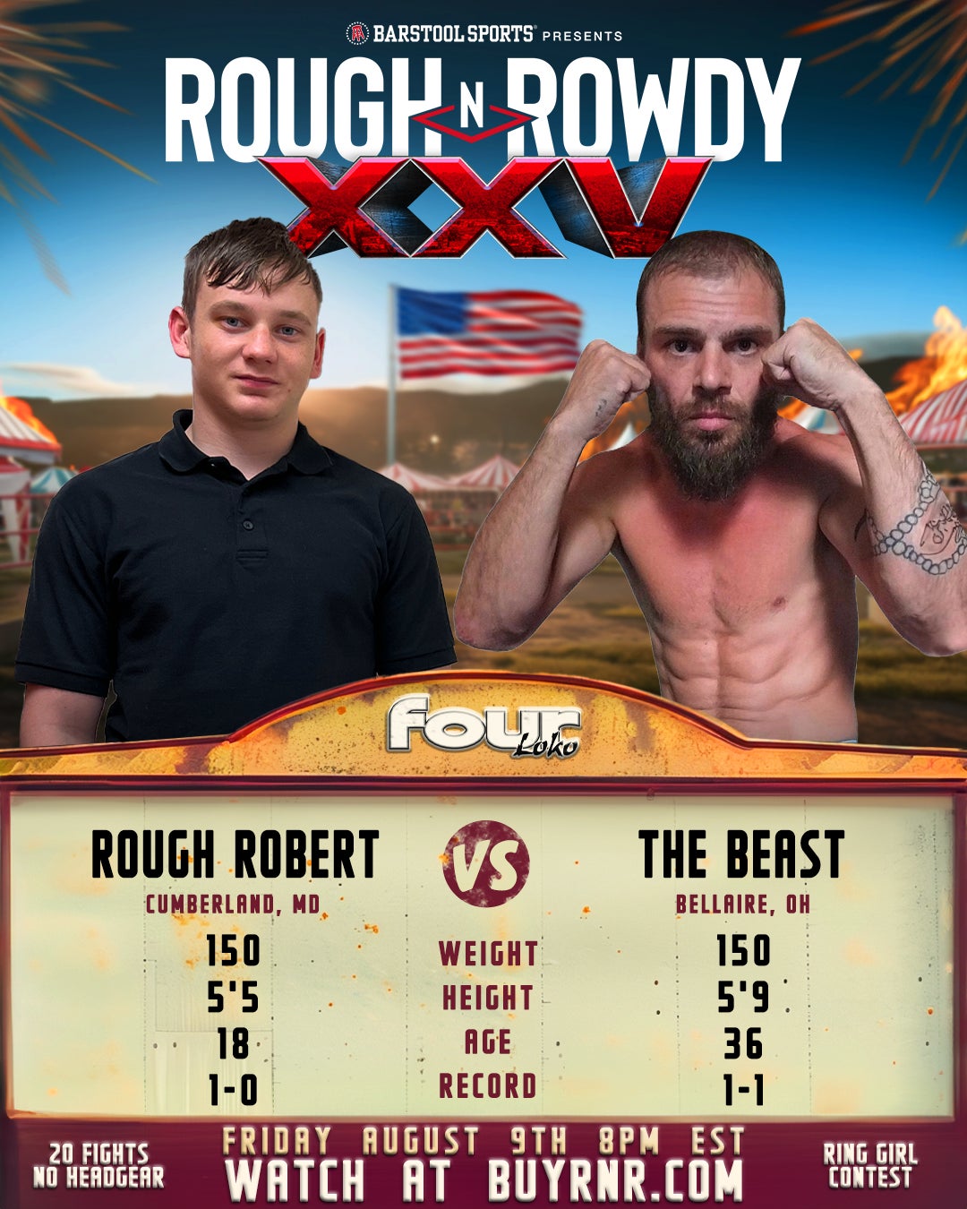 Find out who wins this Friday night at Rough N' Rowdy 25 featuring 20 fights with new (0-0) fighters, live ring girl contest, this main event plus Dave, Big Cat, Robbie on commentary and Nick Turani, Rone joining me on ringside reporting.