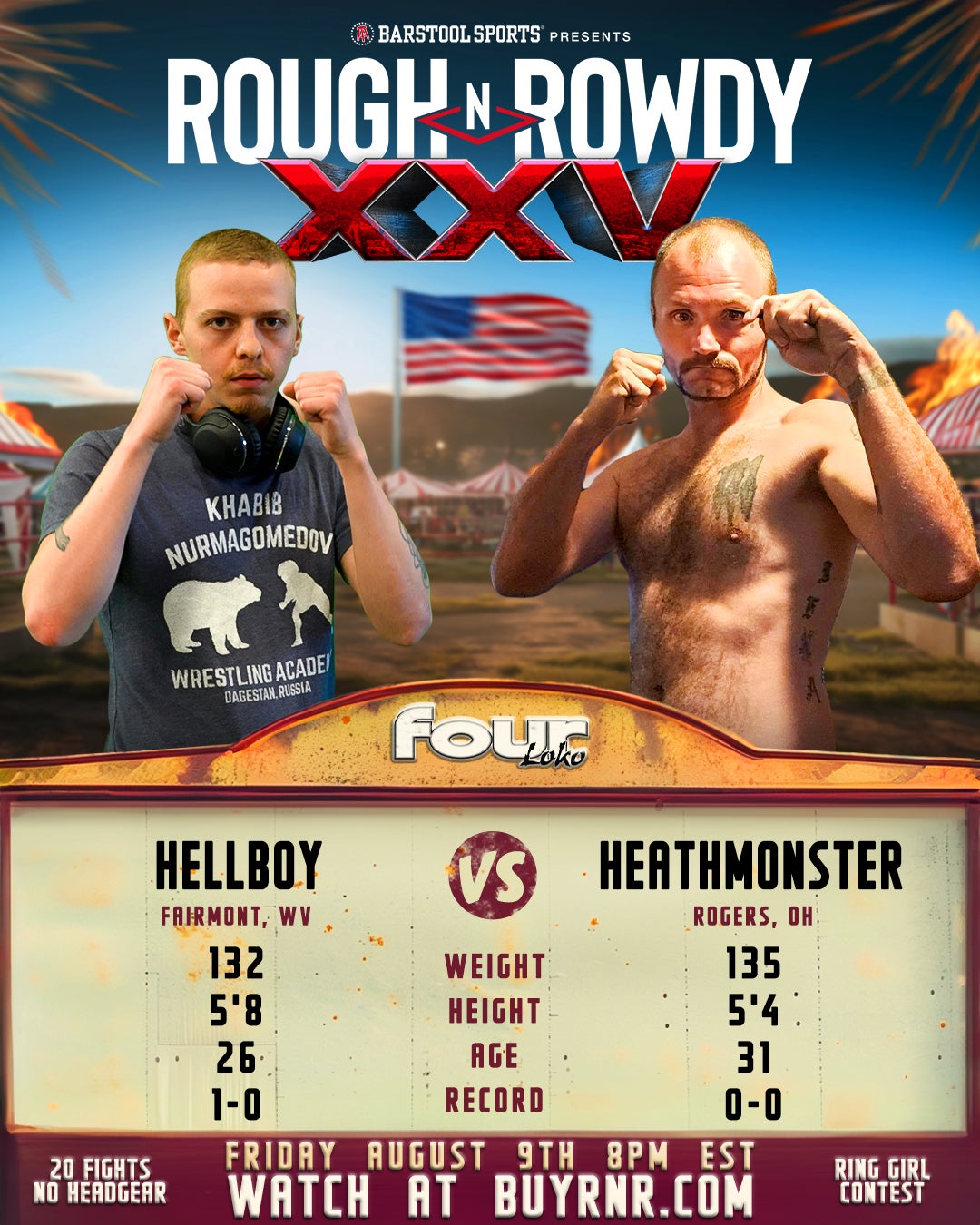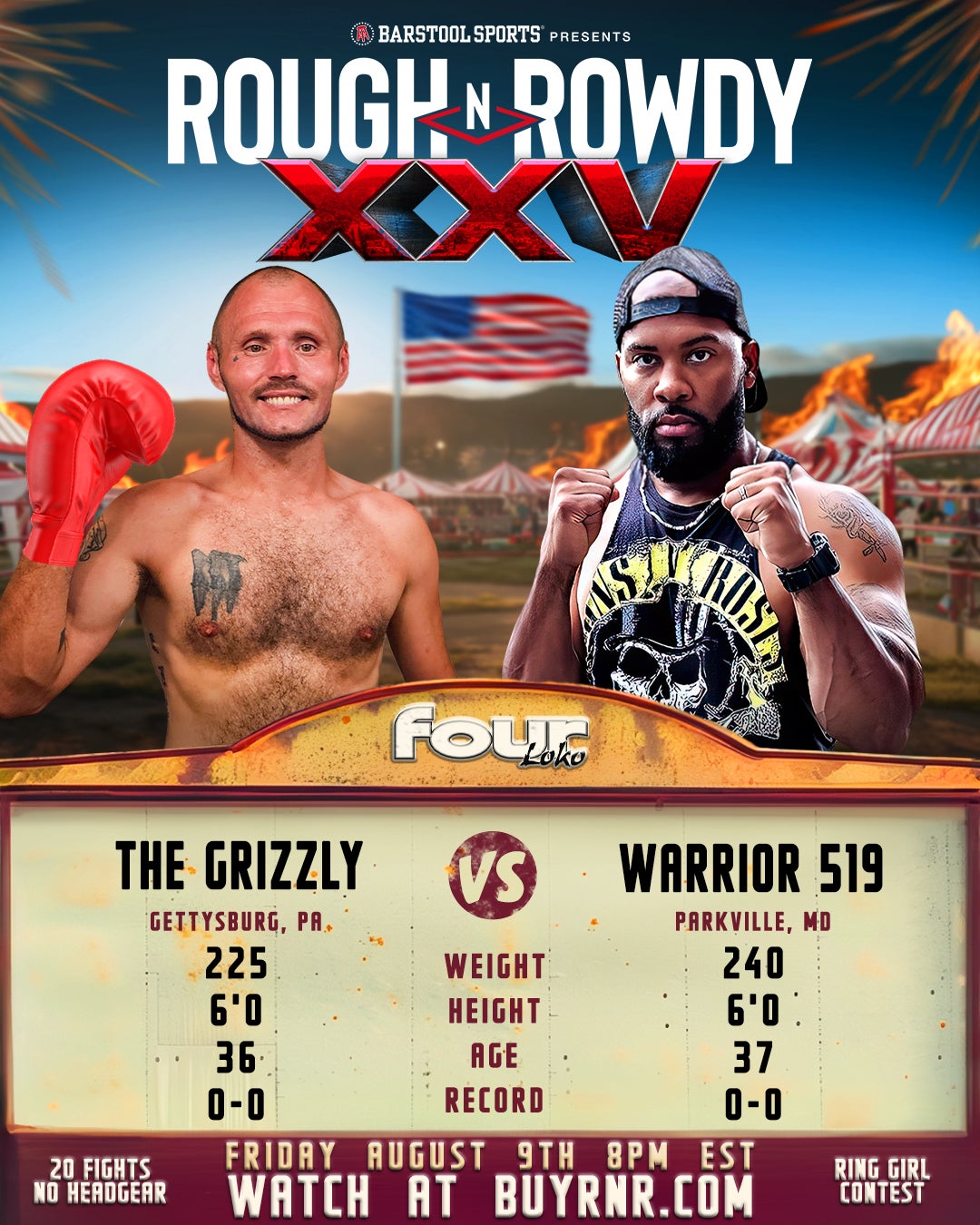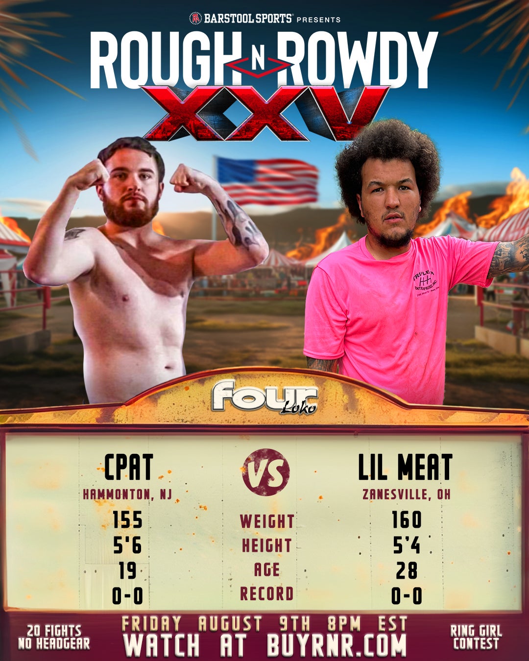 Find out who wins this Friday night at Rough N' Rowdy 25 featuring 20 fights with new (0-0) fighters, live ring girl contest, this main event plus Dave, Big Cat, Robbie on commentary and Nick Turani, Rone joining me on ringside reporting.