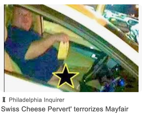 Firstly, would anyone ordering Swiss Cheese on their Cheesesteak in The City Of Brotherly Love dare we say…weird? Yes. Yes it is. Should it matter? Hell no. This is America. I enjoy provolone or American on my meat. John Kruk does mayo (seriously). If anyone wants to ask for Swiss Cheese on their Cheesesteak and it ain’t hurting anyone, go nuts. Now, to answer the Senator from Ohio's question, why don't they have Swiss Cheese at Pat's? Well, the logical response is it objectively takes like shit. But the more blunt and unfortunate answer for Vance would be that Philadelphia (eh, Mayfair) may be the only place in the world who infamously had someone put Swiss Cheese over their dick to sexually terrorize innocent people - AKA The Swiss Cheese Pervert: