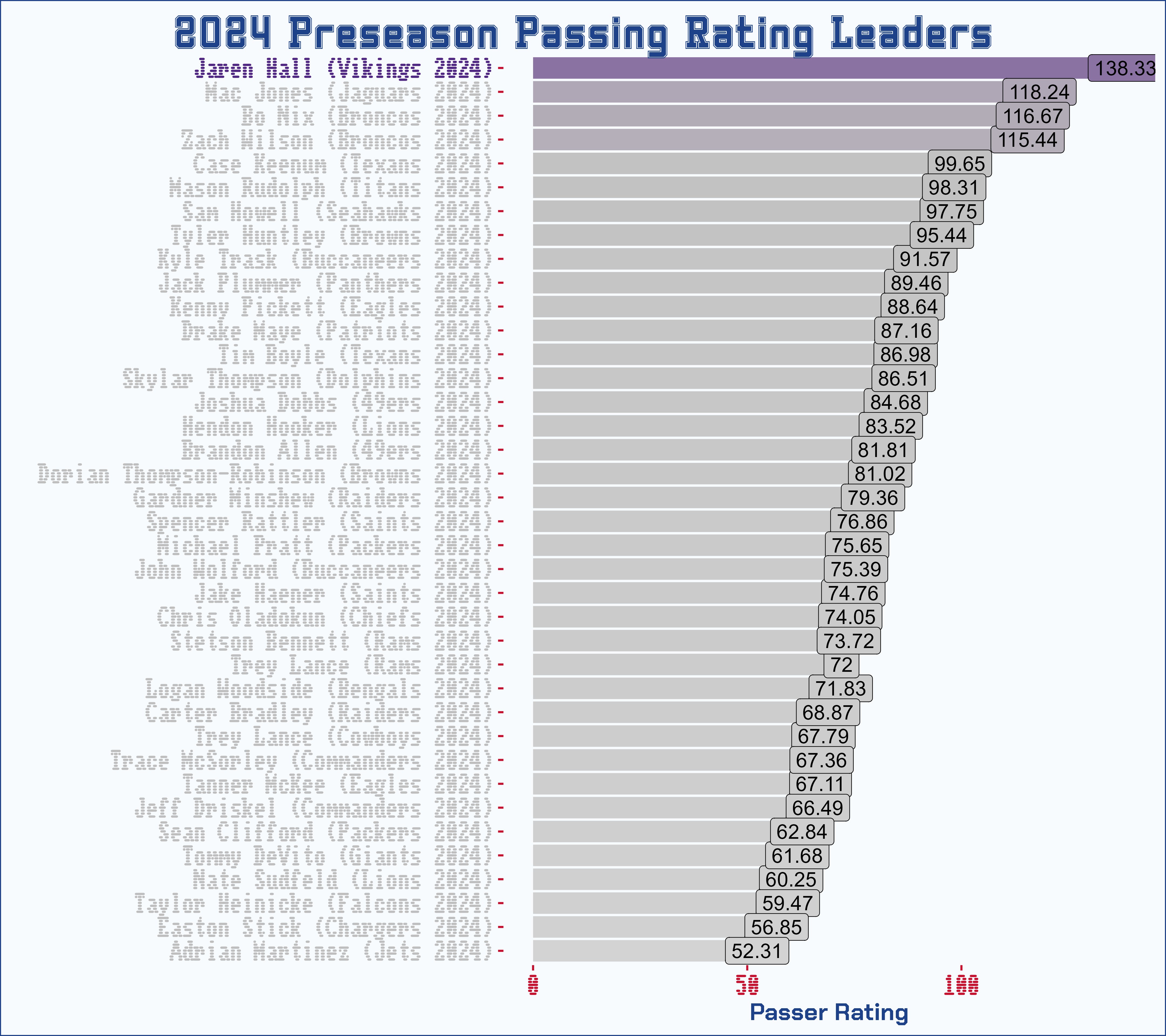 I know it's pre-season so the stats are all skewed but what a brutal outcome for Jaren Hall - the leading quarterback in 2024 pre-season passer rating (min 30 attempts).