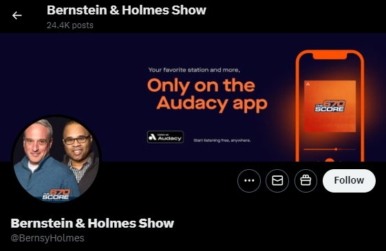 This clip got me good. I must have watched it nearly 100 times since Chuck tweeted it out this morning. Our own Eddie (Barstool) did a 4 hour radio show last Thursday on 670 The Score with Matt Spiegel. The show leading into Eddie and Spiegel's (hope that does not offend) show, is co-hosted by Dan Bernstein and Laurence Holmes. The show is titled Bernstein & Holmes. But for the love of god do NOT call Dan Bernstein of Bernstein & Holmes by the name Bernstein. That's a bridge too far Eddie. You should know better. He's been at The Score for over 30 years. Show some respect. He's a 62 year old man. You should address him as "Bernsy".