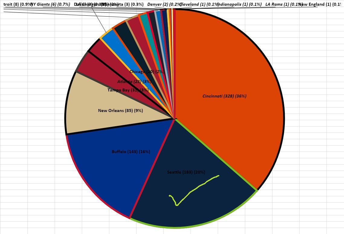 Avoiding Cincinnati in Week 1 of my first year doing a survivor pool felt pretty good. I bet it did for you too, didn't it? I'm assuming you didn't pick them since you opened this blog. What a lesson to be learned for team "I just want to get a Week 1 win". It wasn't that I thought the Bengals had any chance of losing (lost a big parlay thanks to those bums), but I pencil mapped out my full season of picks and just felt this would probably be the only week I'd feel confident about Seattle considering they faced a rookie quarterback in his first start. Especially in Seattle.
