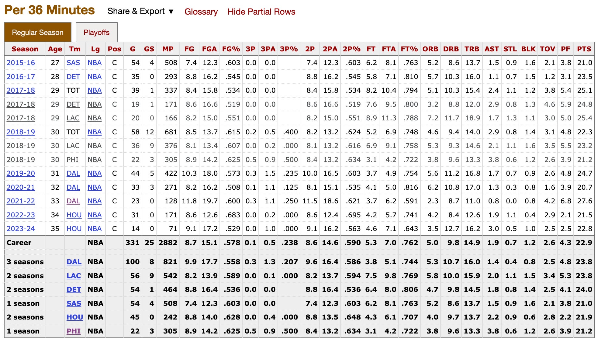 Granted any time you have to go the Per 36 route it usually means the player actually isn't all that good, but I will not tolerate any Boban slander in this blog. I always felt that if he could just get his conditioning right there was a role for him at the NBA level, simply because of how massive he is. But now at age 35, those days look to be pretty much over.