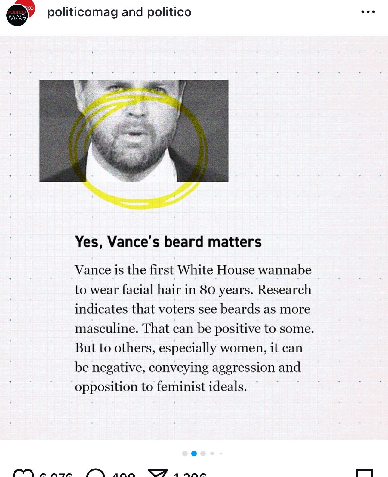 Source - One of the first bits of nonverbal communication to appear in the debate was on JD Vance’s face: his beard. As POLITICO Magazine has noted before, Vance is the first White House wannabe to wear facial hair in 80 years. Our appearance is fundamental to our body language, and research indicates that voters see beards as (surprise, surprise) more masculine. That can be positive to some, reading as strength and competence. But to others, especially women, it can be negative, conveying aggression and opposition to feminist ideals. …