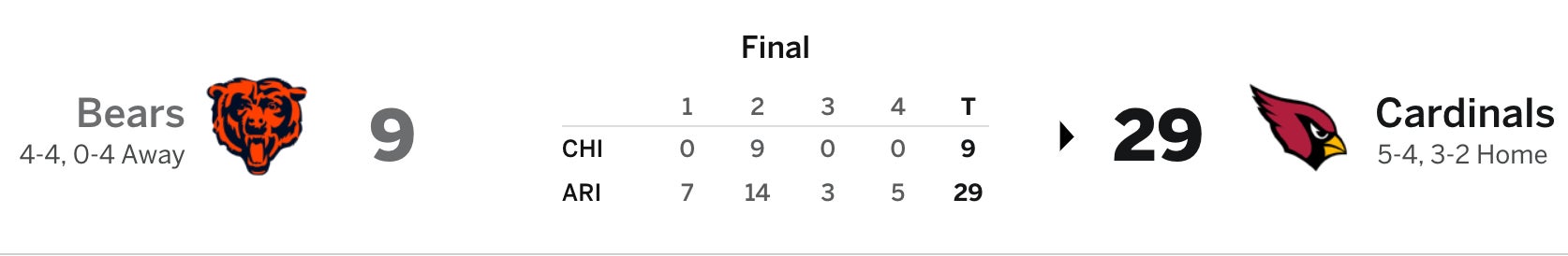 Anyways I have no solutions to solve any of these complaints other than to just urge the NFL to stop scheduling the Bears in the afternoon. It's not fun and I can't take it any more.