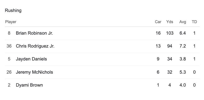 Jayden was back to being classic Jayden- going 25/30 with 3 TDs, and another TD on the ground. And speaking of the ground game, holy moly.Â