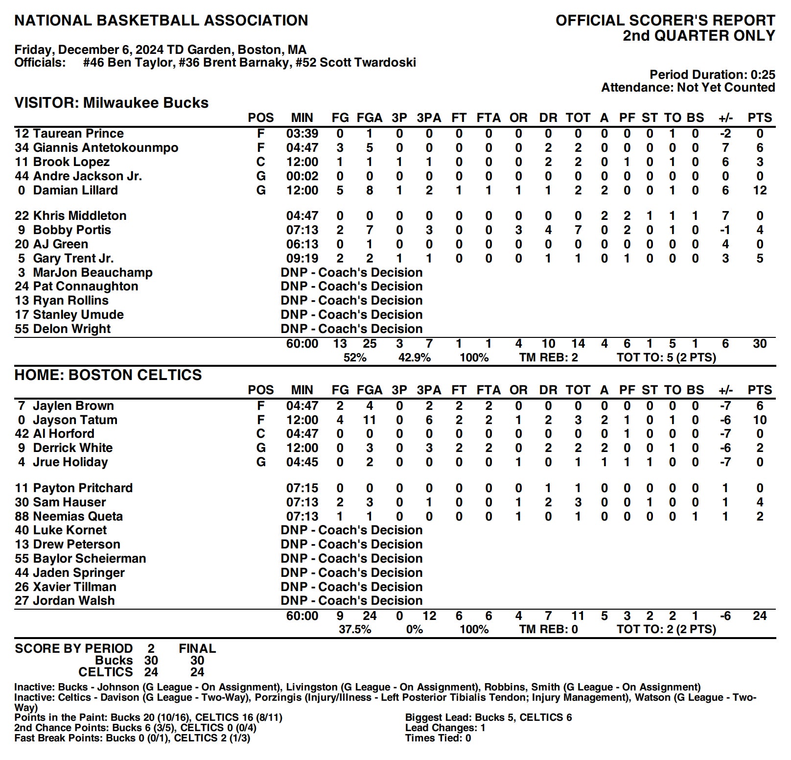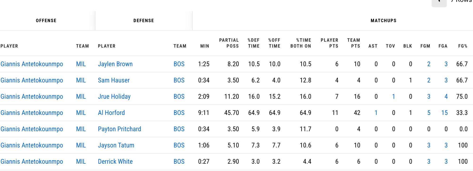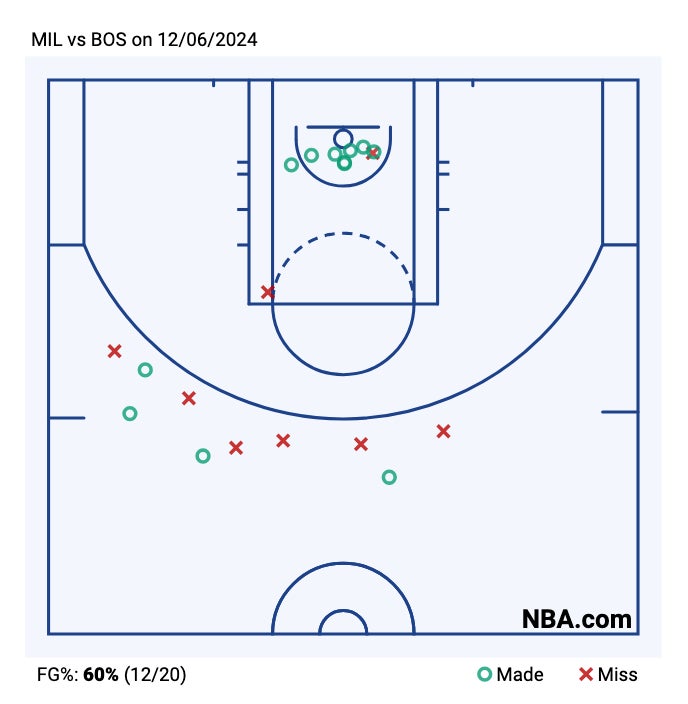 So while they shot just 32% (and honestly it was much worse for the majority of the game) from deep, it still ended up being 17 3PM, and if you're allowing the Celts to generate that type of volume, the math is going to math and you're going to be in a tough spot. Add in virtually zero fastbreak points and points off TOs for the Bucks, and there just isn't enough extra possessions for them to close the gap offensively.