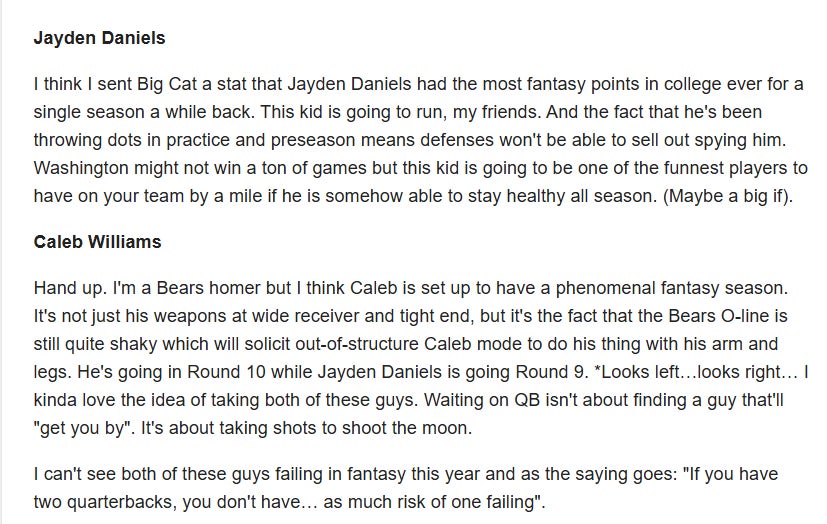 There's your top-100 of 2024. I'll be back soon for the biggest award of the fantasy football season once I finish crunching all the numbers on it: Troll of the Year.