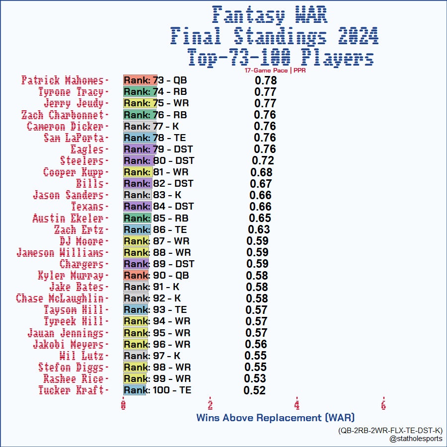Fantasy Football Top-100 Players of 2024 By WAR (Wins Above Replacement)