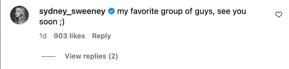A quick look at his Instagram is a bunch of posts with celebrities seemingly from invites that he got from being associated with Sydney: Euphoria premieres, award shows, etc. I can't think of many things that would make you a higher commodity on campus than you traveling the planet with Sydney Sweeney so a hat tip to Seppe for landing the golden ticket. What initially seemed like a fraternity just using photos of what many would call the hottest woman they've ever seen turns out to be a real heartwarming story of Sydney helping out these young hardworking fellas over at Miami with some great promo.