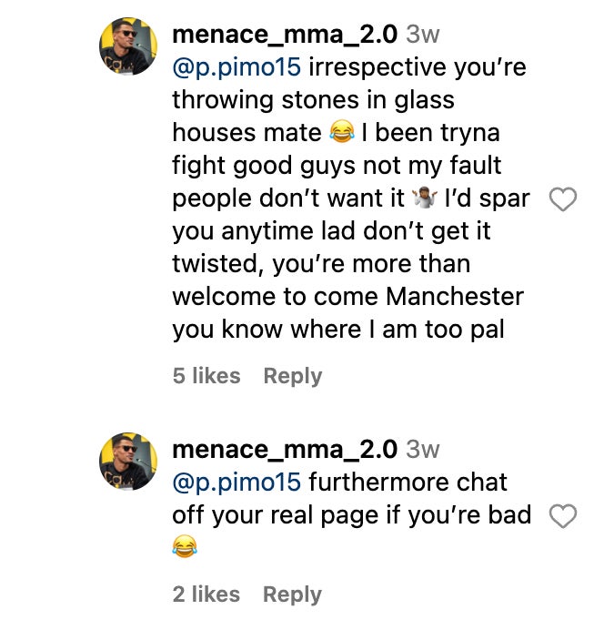 It sounds like Frimpong's bad reputation stems from an incident when he fought one of Pimblett's teammates, where Denis made comments mocking his opponent's dead grandmother - just sounds like a piece of shit all around. He made the decision to invite Paddy out to spar anytime/anyplace/anywhere, and unfortunately for him….Paddy accepted that offer nearly instantly and made the trek to Manchester to embarrass him in front of his own gym. Be careful what you wish for.