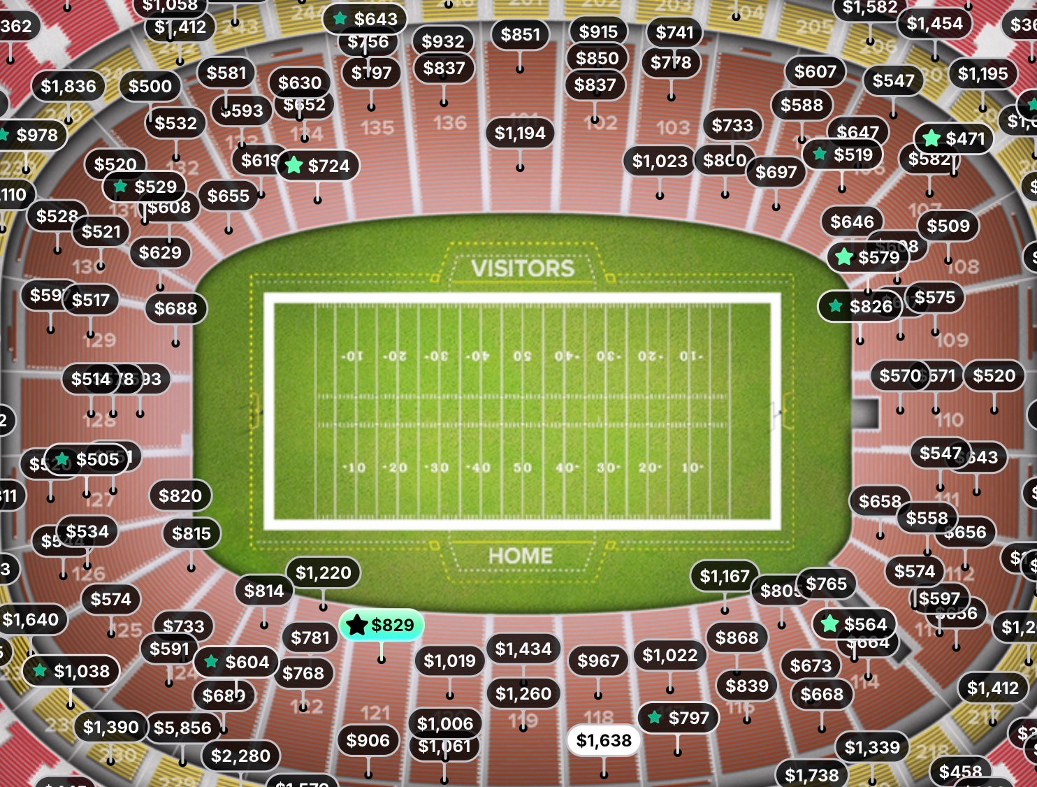 I was thinking about Taylor Swift's box yesterday. It's directly above section 119. Meaning the fans who sit in the very top row of 119, which would be row 38, will potentially sit just feet away from Taylor Swift. They could literally turn around and high five her. There must be rich Swifties out there (or rich parents of Swifties) who would pay $10,000 to sit that close to Taylor Swift. As crazy as that fan base is there has to be. Right now on Gametime there aren't any seats up top in that specific section available. But on Gametime, for next weekends AFC Championship Game, the most expensive seat in the entire lower bowl is Section 118, Row 37.