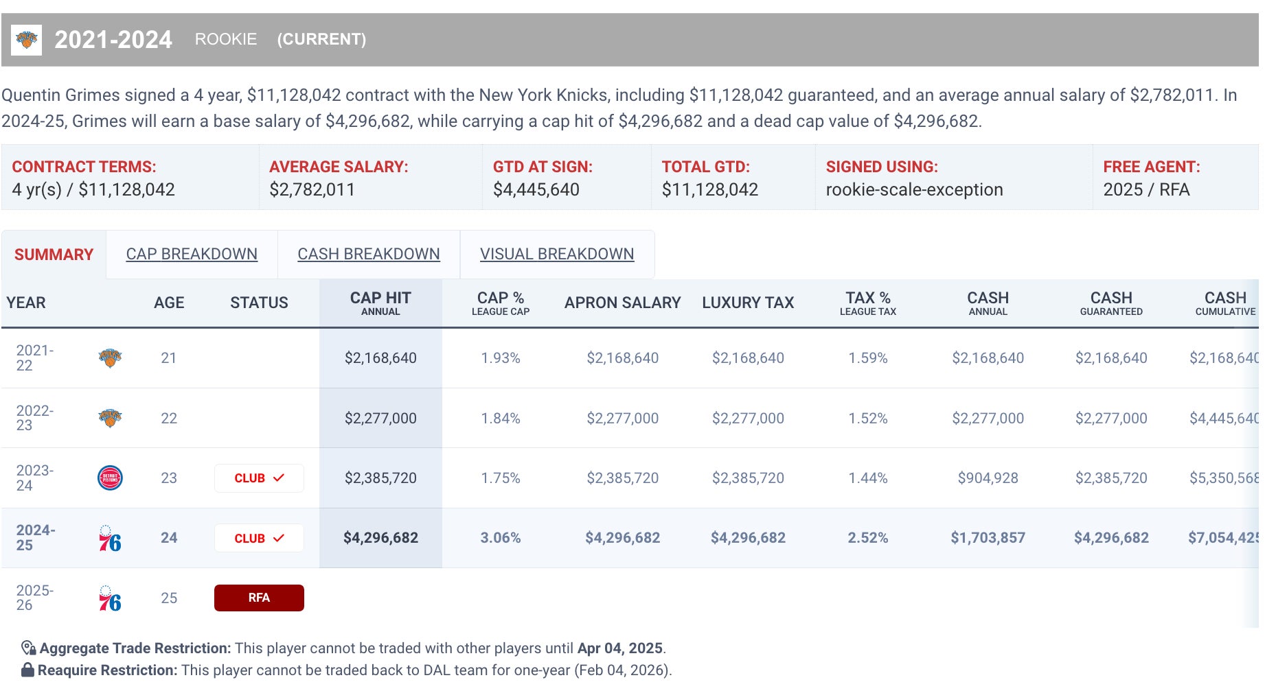Given everything that just happened with Luka, I can't imagine Mavs fans are thrilled that this all seems to be done as a way to get ahead of the extension/RFA negotiations and save a little money. Again, I feel for them because they are in absolute sports hell right now