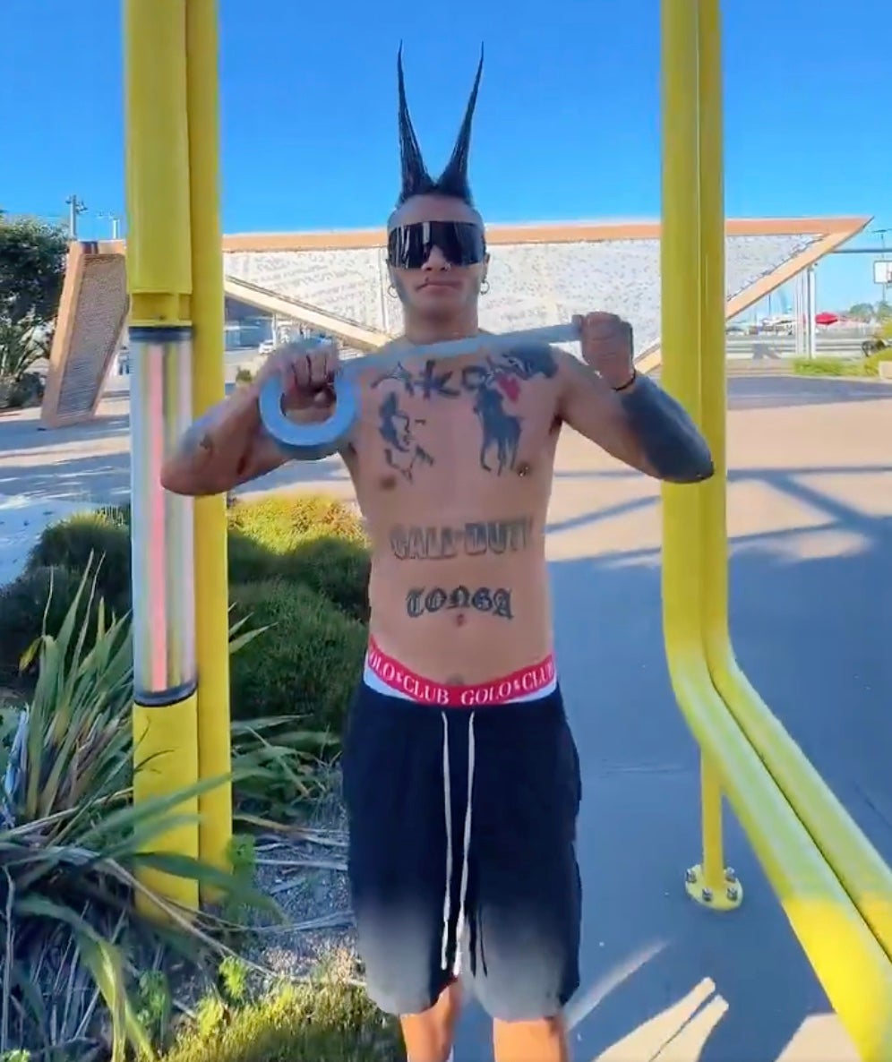 I always hate to criticize another man's choices after the fact, because hindsight is 20/20. But me personally, I wouldn't have made the jump from 100 strips of duct tape to 1000. I appreciate Lil Golo's commitment to the 10x lifestyle. Grant Cardone would be proud. I can tell by the colossal Call of Duty tattoo on his rock hard abs, his two-foot long shorts strings, and the incredible height of his hair cones, that we're dealing with an exceptionally extreme Australian here. If you asked ChatGPT, "What if a Monster Energy flat bill were a person?", it would spit out a picture of Lil Golo.