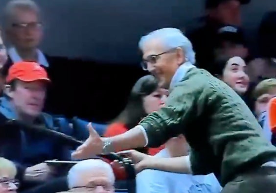 Love This Old Virginia Fan Saluting The Crowd And Stopping To Shake Hands After Getting Ejected Mid-Play For Berating The Refs