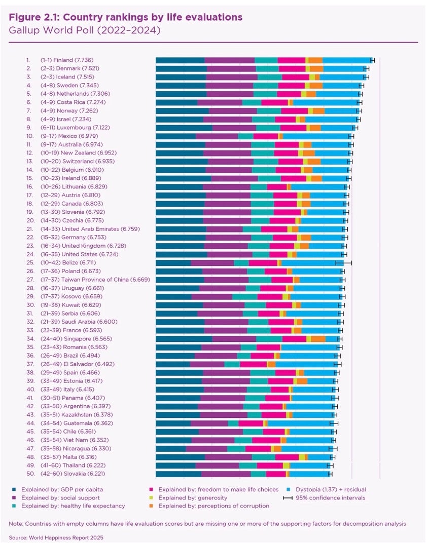 The 2025 World Happiness Report Has Been Released, Finland Ranked Happiest Country for 8th Straight Year, United States Ranks Lower Than Ever
