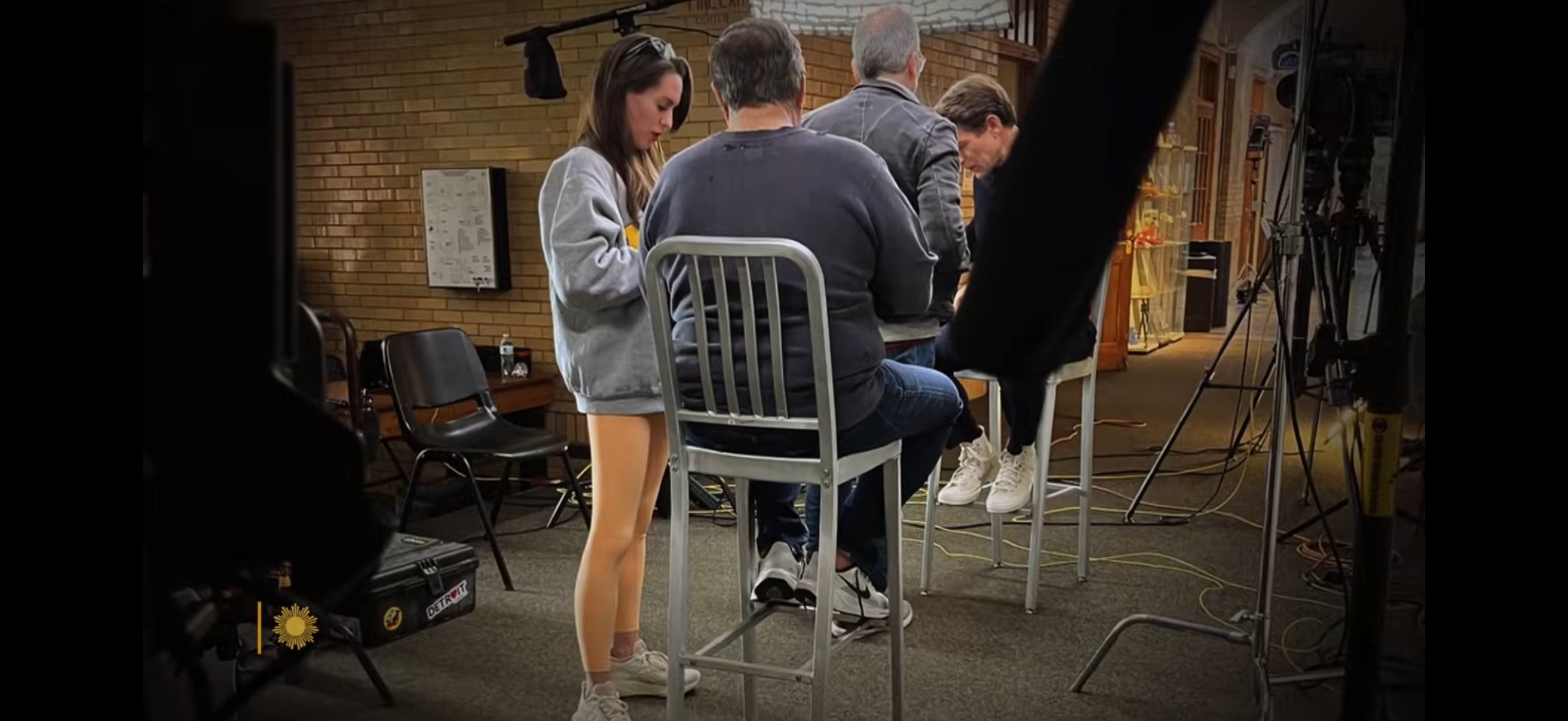 The Maine native — who supported Belichick on the interview set in a matching sweatshirt — sat just out of the main frame, with journalist Tony Dokoupil describing her as a “constant presence” during their conversation.