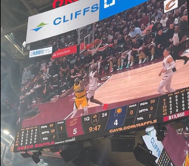 And this play might have something to do with it. Way to set the "they don't call that in the Playoffs" tone. Right off the bat we get this foul called that makes your brain instantly identify it as the worst call in NBA history until you remember the multitude of others in recent years. And feel free to torch me as a elder millennial boomer who can't search for shit, but this was the only clip I could find of Siakam's Tom Cruise like self stunt man move after getting brutally assaulted by the radiating body heat coming off Evan Mobley's arm. From a fan at the game. Had this been in Indiana, it would have been as safe from public view as the Epstein list.
