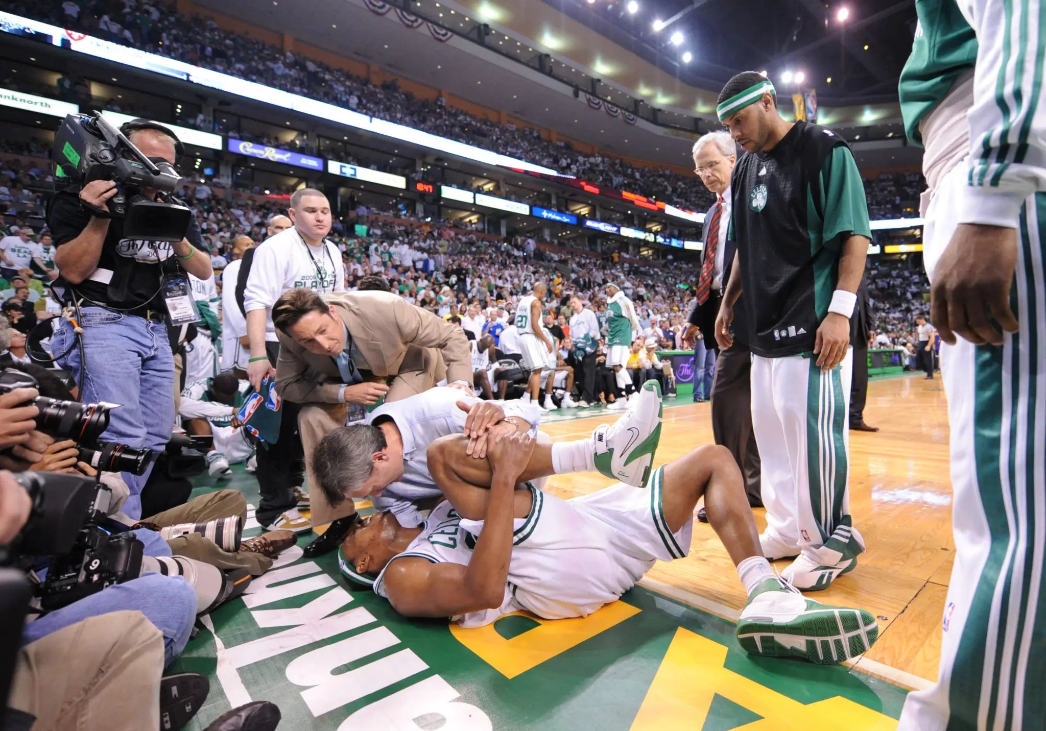 I'd also like to thank Pierce for helping provide just a little bit of humor on a day like today, given what took place last night. Arriving at his set in a wheelchair as an ode to Game 1 of the 2008 Finals? Fantastic move