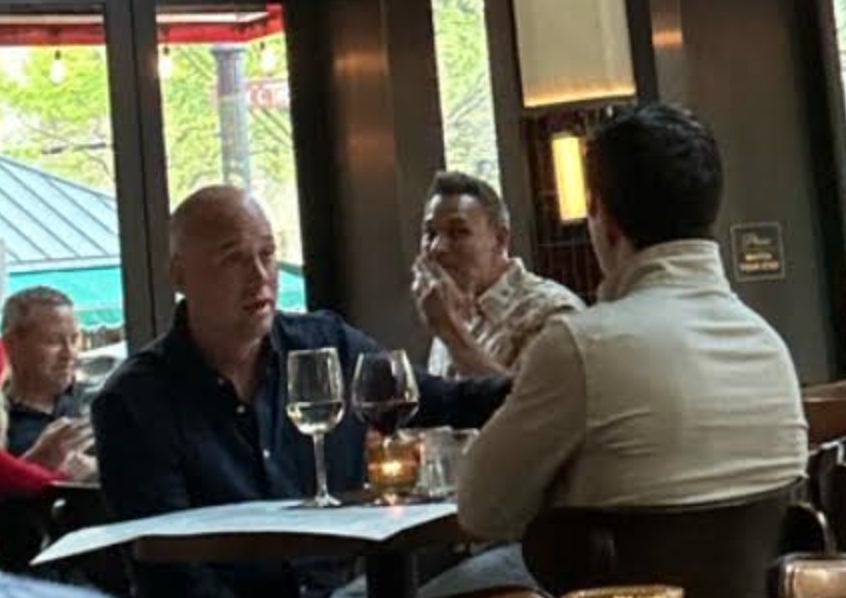 A couple of buds just sharing some vino. Start of a beautiful friendship.