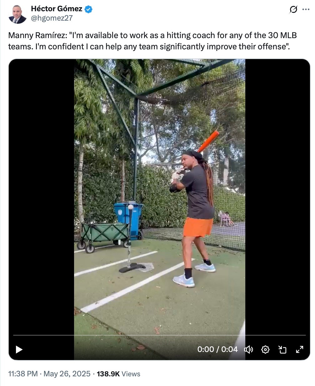 I don't know what type of settings Héctor Gómez has on this tweet that won't allow me to embed it into the blog, but you've seen Manny Ramirez swing a baseball bat before. Even at 52 years old, here's a rough approximation of what it looks like.
