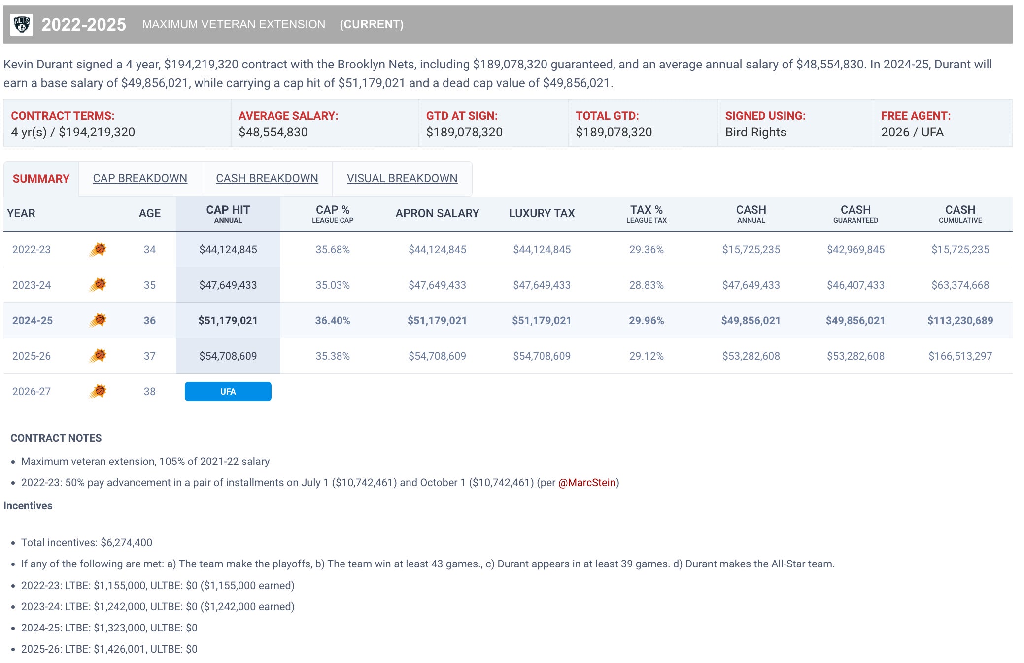 You then have to weigh if it makes sense to potentially put yourself in apron hell for a 37, 38, and 39 year old KD. You have to be a team that can win now, has the assets/contracts to make the math work, and has a positional need.