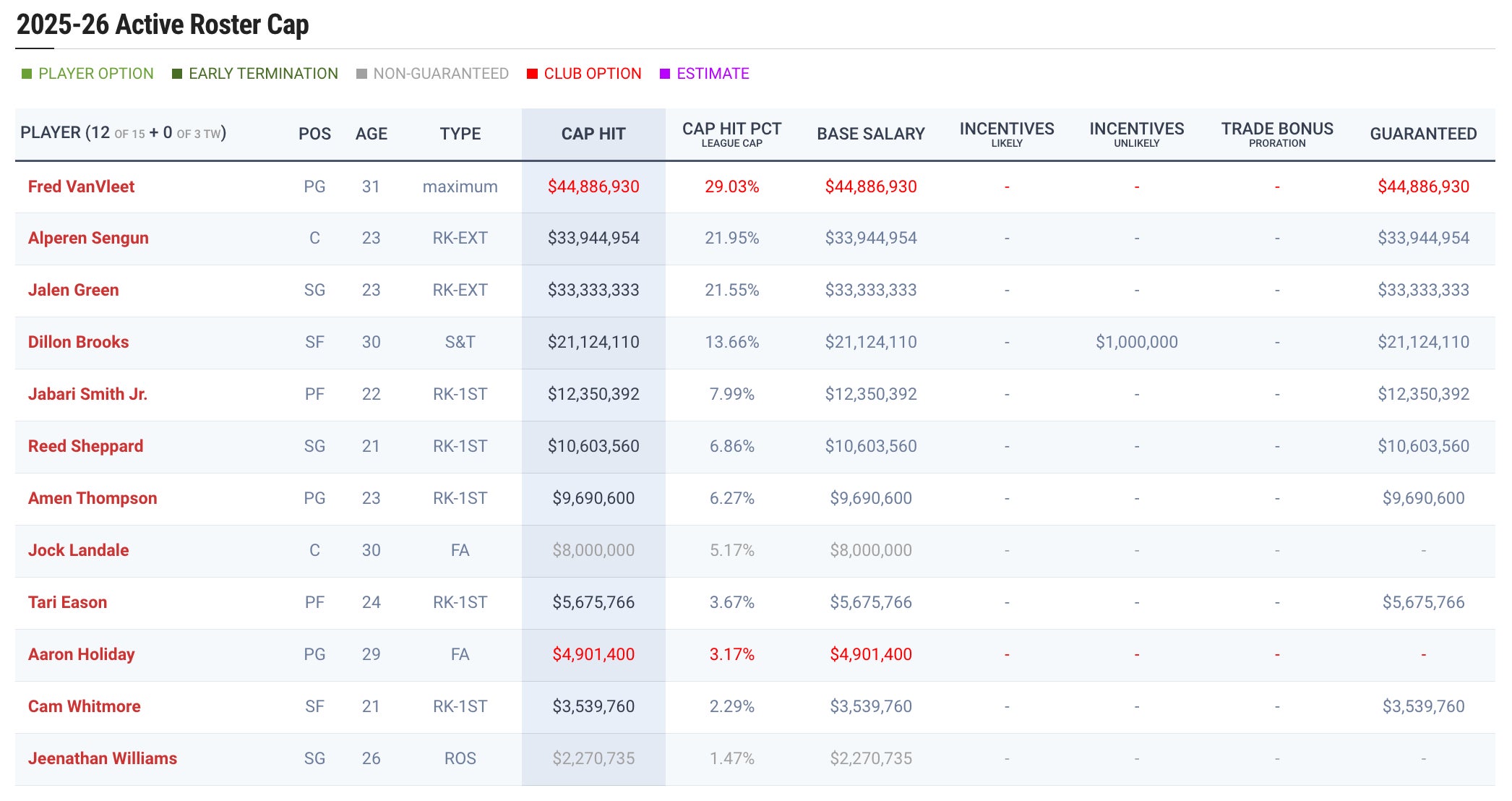 The Rockets also own plenty of picks to satisfy that part of the trade as well, including a 2027 unprotected Suns first, and then a potential 2029 Suns 1st round pick swap as well as all of their own 1sts, and a 2027 BKN 1st round pick swap. They can basically trade 5 future 1sts and 7 future 2nds as they negotiate deals this summer.