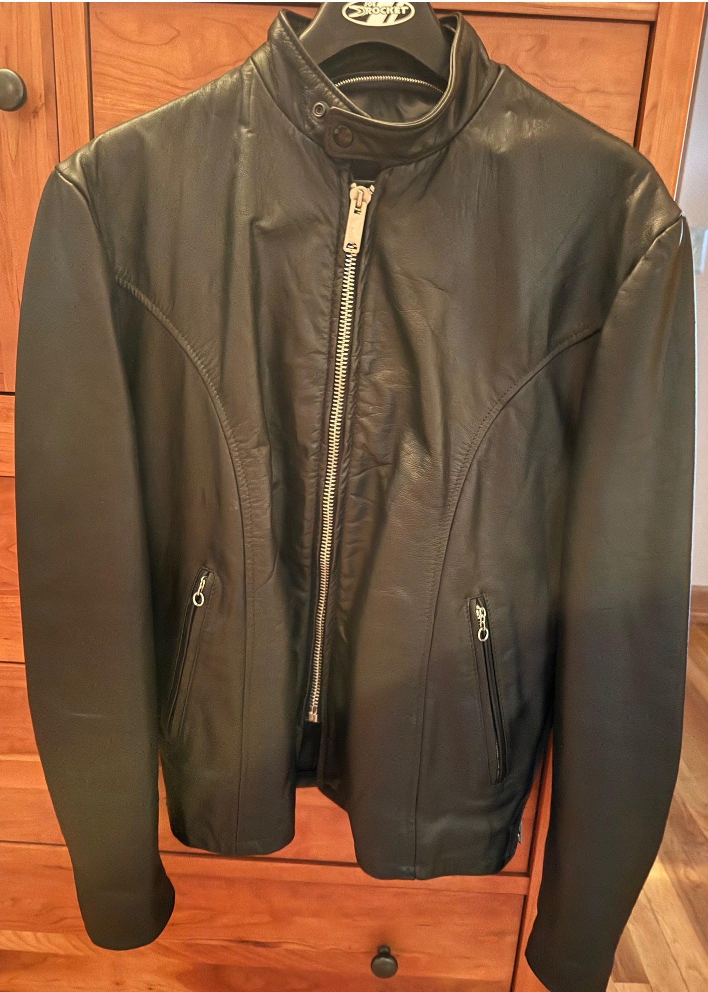 One Sunday morning, we walked into Building 19, and I spotted a random leather motorcycle jacket hanging on a rack. As I rushed over to it, I yelled to Susan, "Look, a leather jacket!"