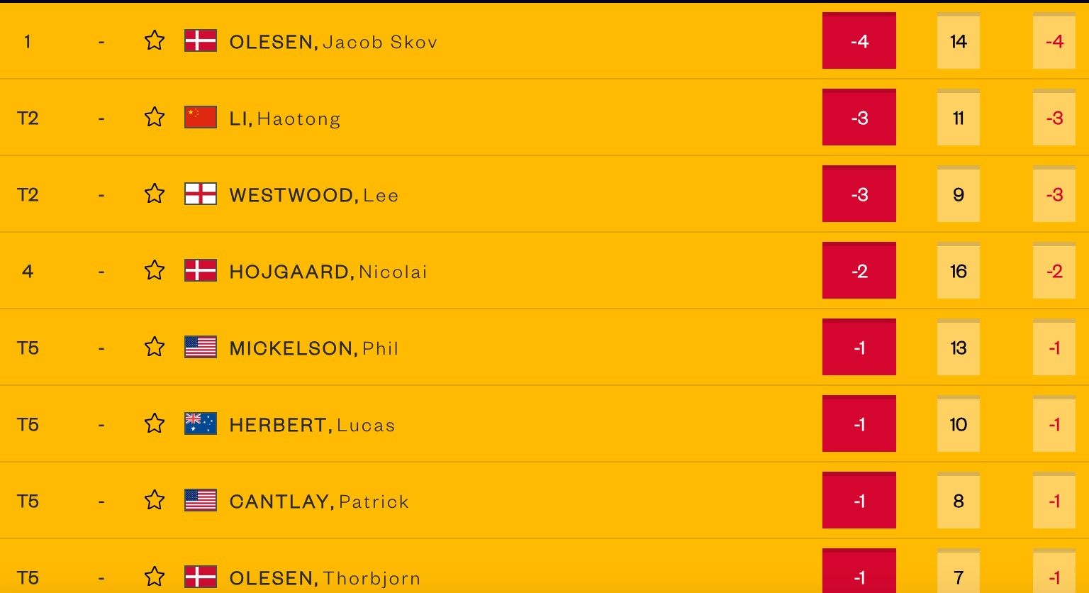 The current leader is Jacob Skov Olesen, who really jumped out with the eagle here on 12