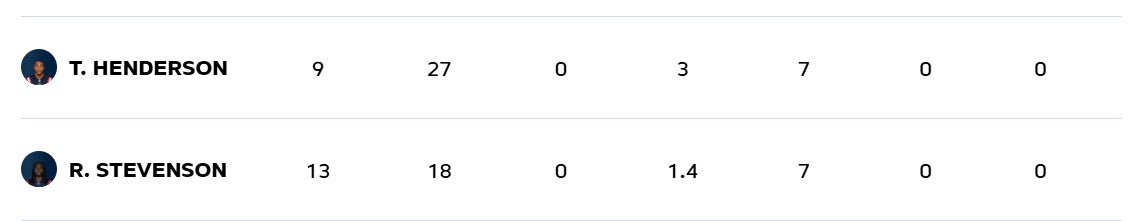 But look at that stat line for the two Patriots running backs. WOOOOOOOOOF.