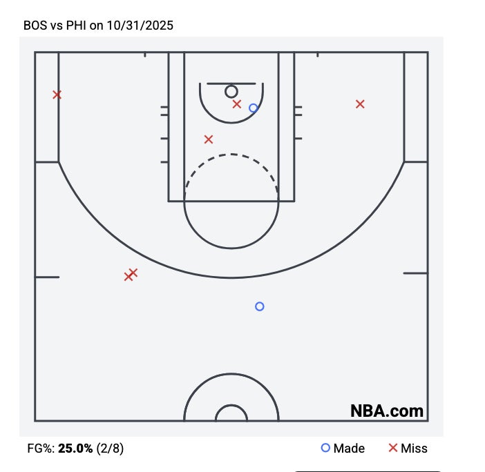 But the outside shooting? Disaster. No other way to say it. Eventually he'll snap out of it, but another 1-9 last night was brutal.