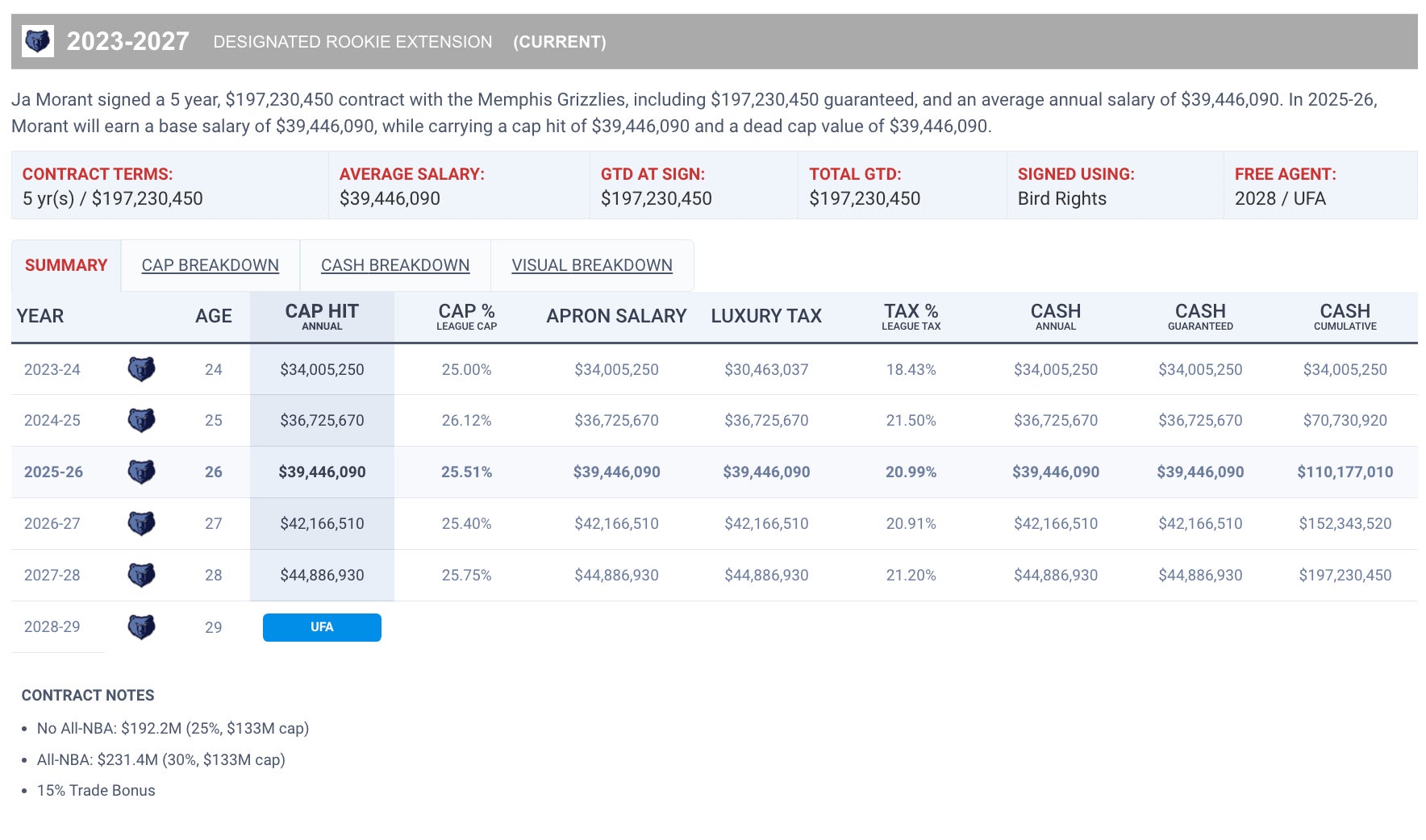 So if you're the Grizzlies, what do you do? I'm not sure Ja's contract is all that movable right now given his durability issues and limitations around his game