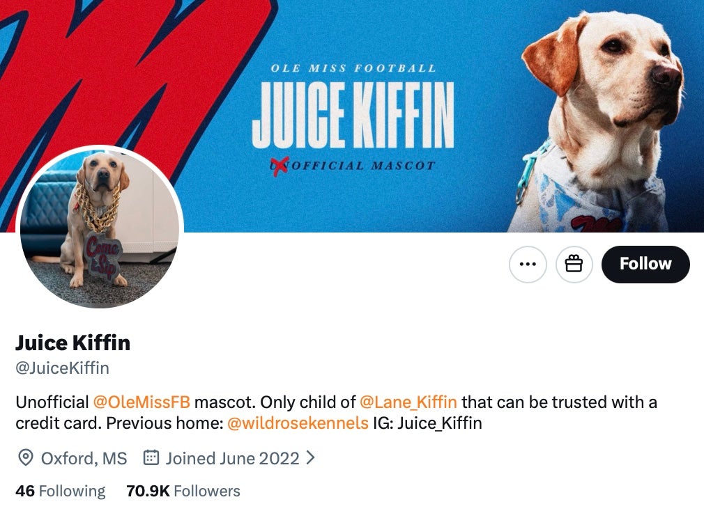 But thoughts and prayers to Juice. I can't wait to see what happens next. Does Lane have something up his sleeve? Who has the password to the Juice Kiffin Twitter account? Are we about to get a tweet from @JuiceKiffin announcing his arrival in Baton Rouge? Or are we going to hear that Juice has filed for emancipation, that he'll be dropping the last name Kiffin, and that he's a Reb for life. It's gotta be something. The internet won't just let Juice the innocent dog who has no fucking idea what's going on go quietly into the night. Juice needs a new landing spot the same half of Ole Miss' players will after the season. There has to be some sort of conclusion to the Juice Kiffin story.