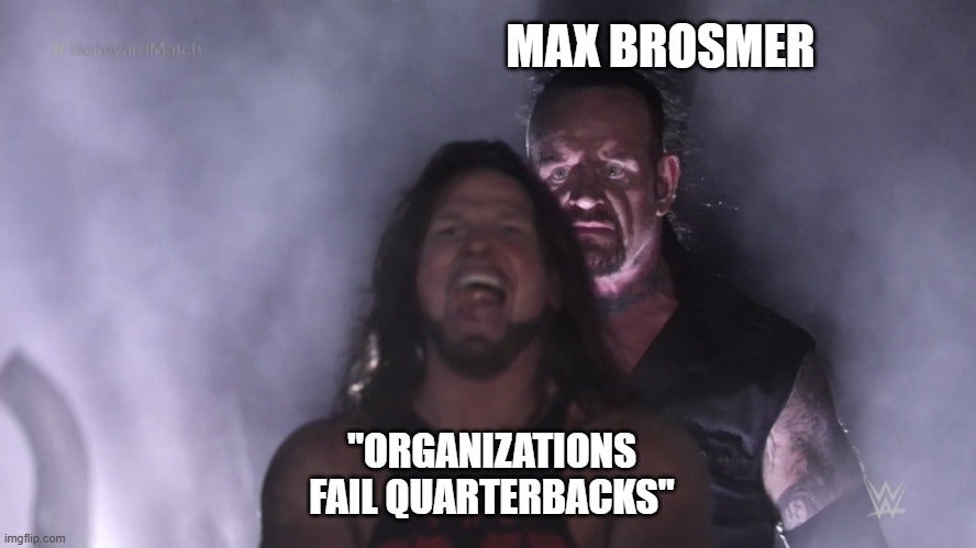 I don't think we should blame those four interceptions on Max Brosmer though. Those were on "12".