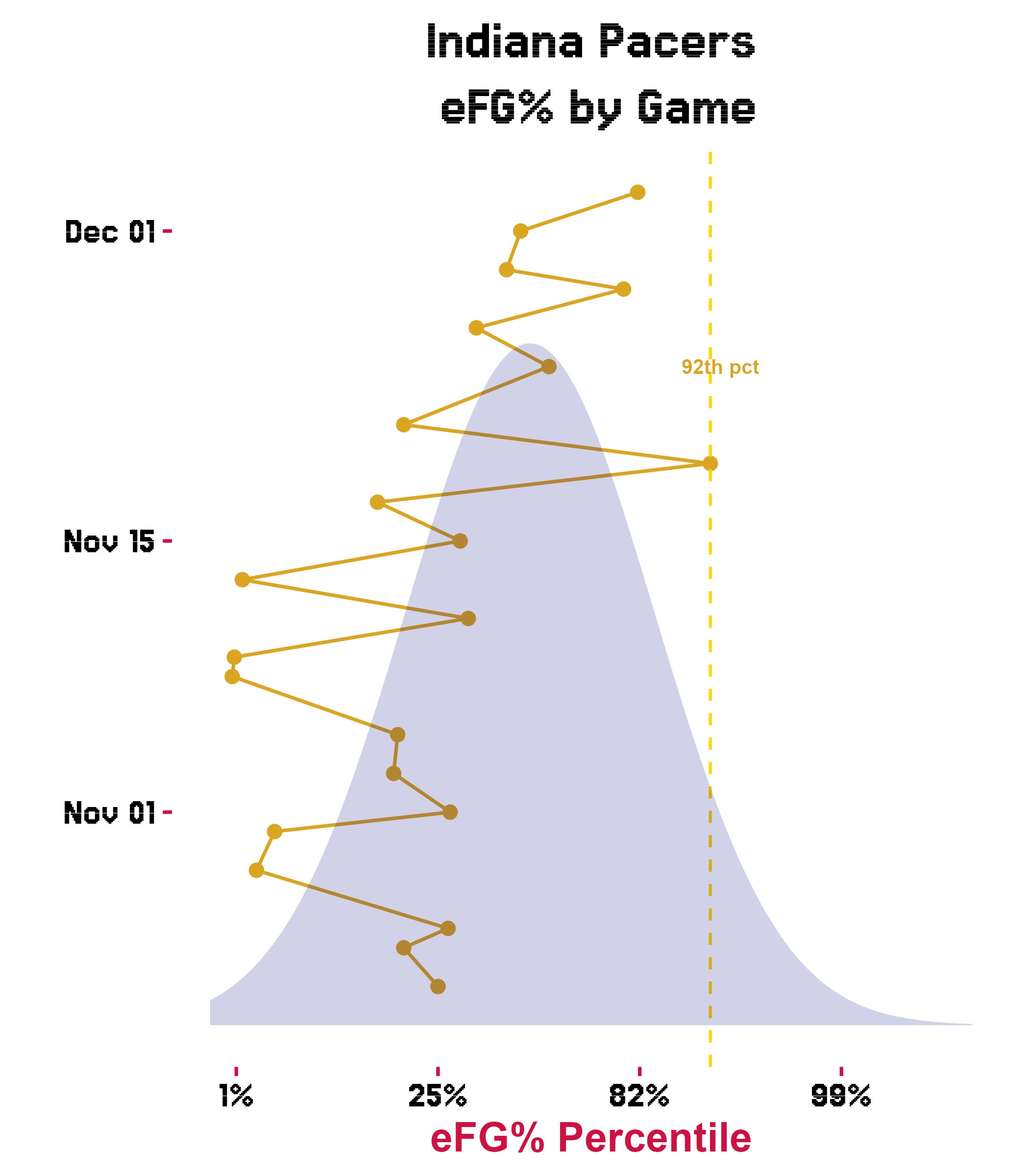 Things did NOT start great this year for the Pacers as they try to figure out life without Tyrese Haliburton and Myles Turner. Especially in the shooting efficiency arena. They failed to hit the league median in shooting efficiency in any of their first 14 games. That is… not good.