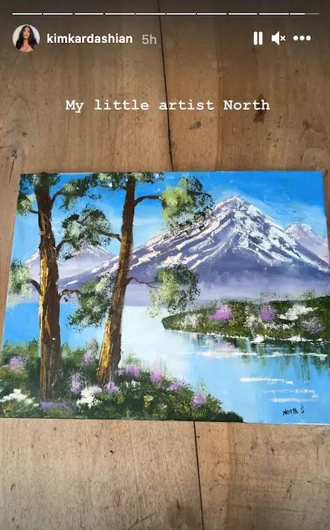 A month ago, Kim Kardashian’s kid was in the headlines for painting an oil canvas that looked like something you’d see out of Bob Ross. North West paints at the likes we’ve only seen from Leonardo da Vinci and Claude Monet.