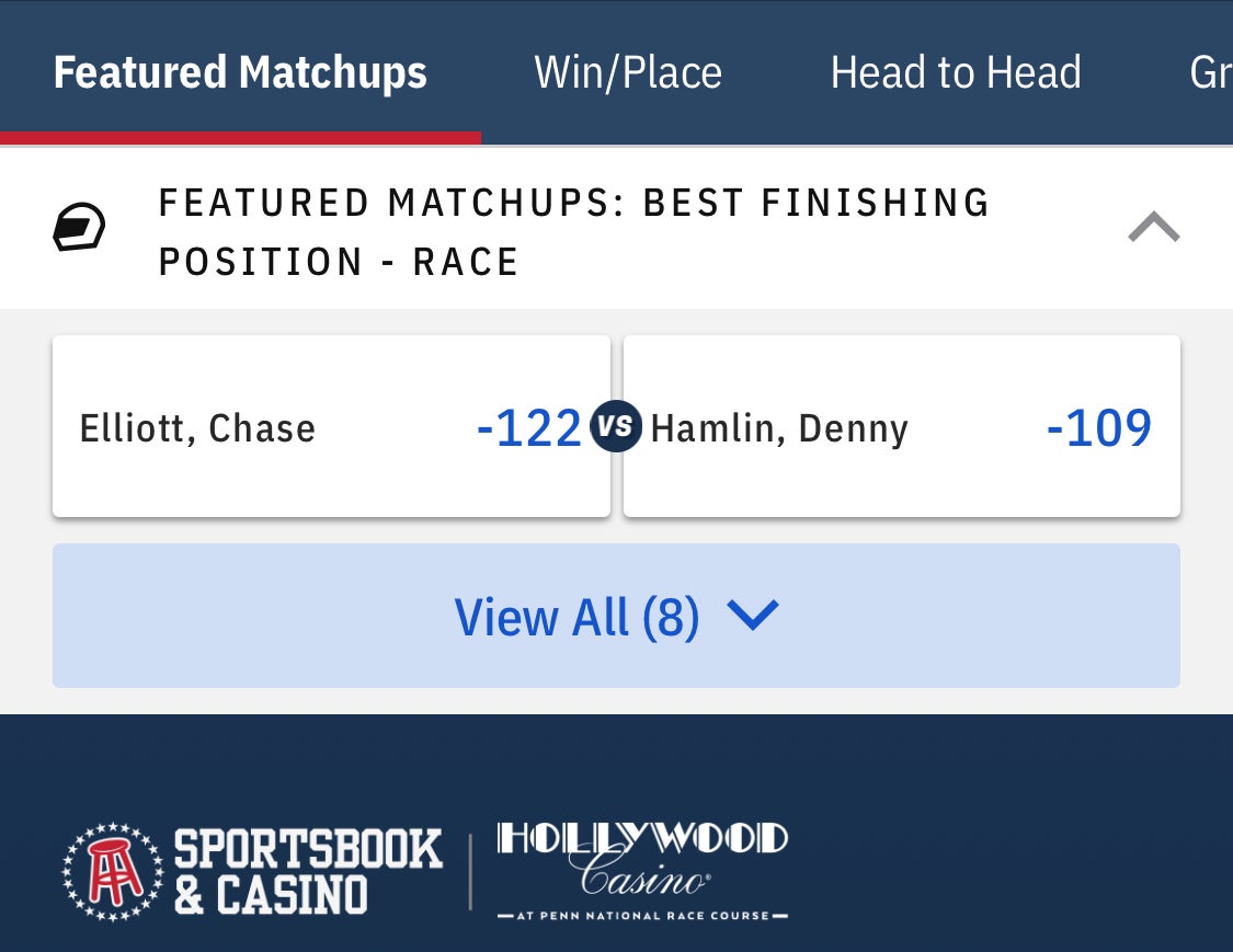 Right now, at +700, Elliott has the second shortest odds to win Saturday's race and he's also pitted against Denny Hamlin in this week's Featured Matchup on the Barstool Sportsbook.