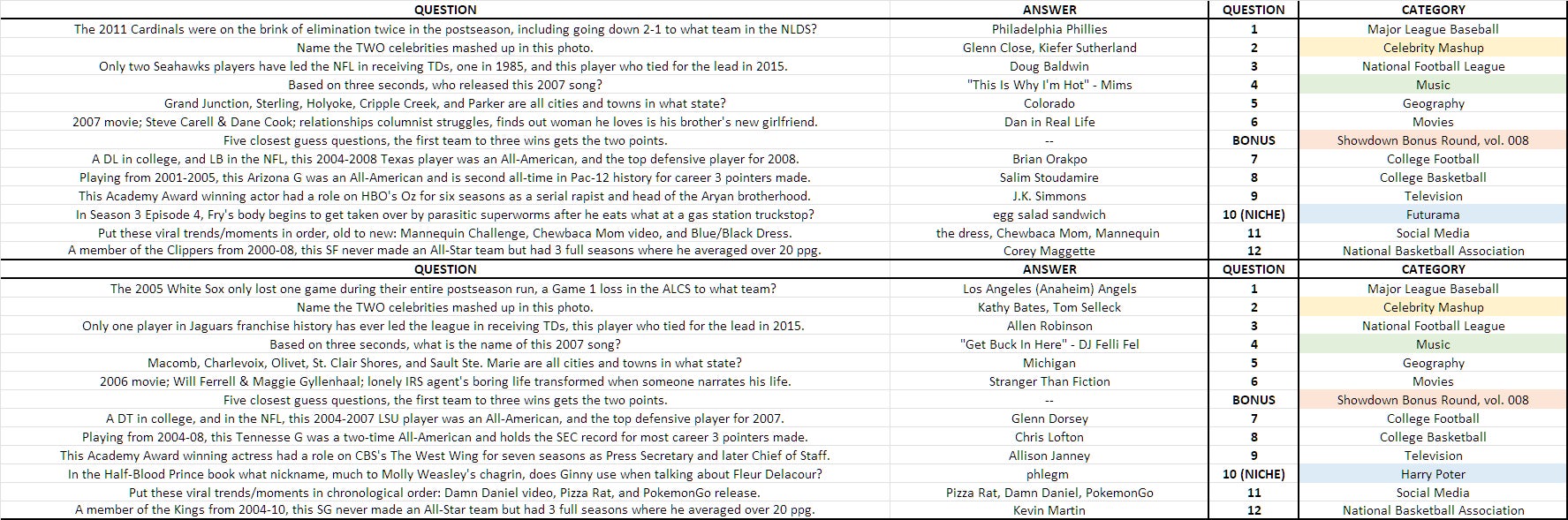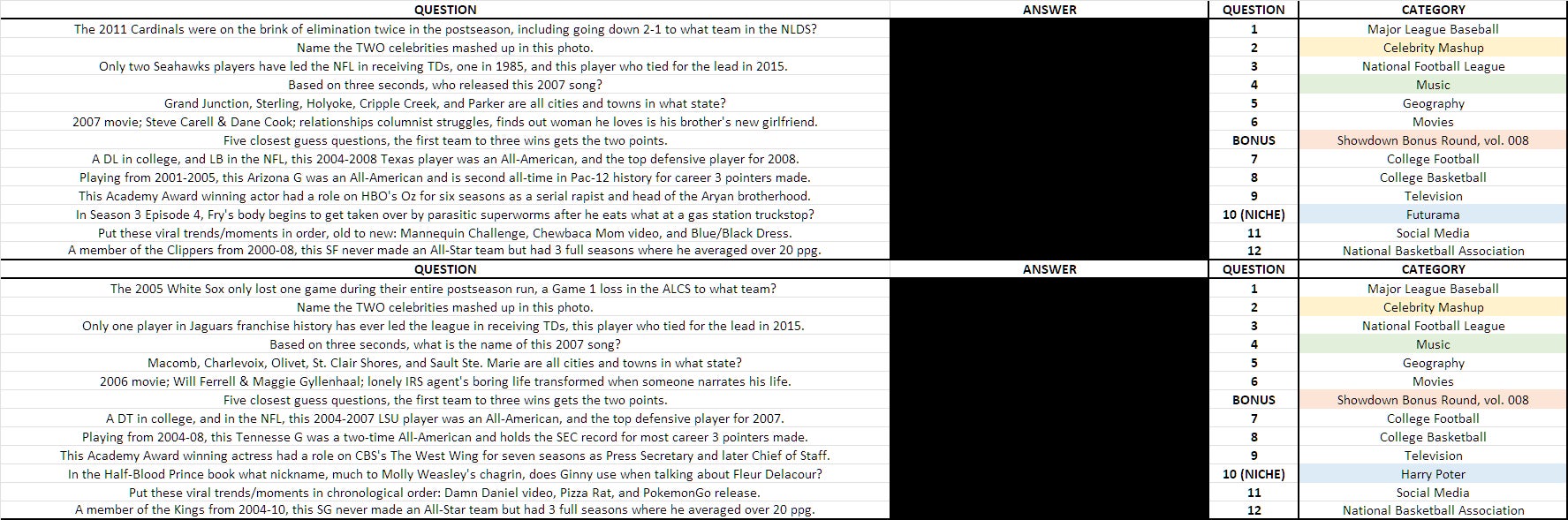 Here are this match's questions...